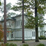 behind a fringe of pine woods. Among the trees we could see elegant wooden villas and smaller summer-houses with little gardens – most of them deserted in October. There’s a very individual, charming atmosphere to the place – we really liked it. We also enjoyed the train-ride, and as we returned over the bridge to Riga, we had a last view of the Old Town skyline, bristling with proud towers.