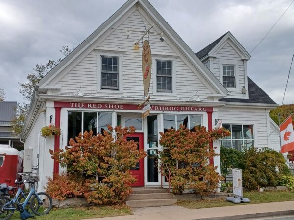 The town of Mabou, on the west coast of Cape Breton, is a Gaelic stronghold, with a college for Gaelic culture, a newly-founded tiny Gaelic-medium elementary school, a quirky museum and the famous Red Shoe pub, founded by the musical Rankin family, and famed for its live music. I had the chance to use my Gaelic there with folk involved in the various places.