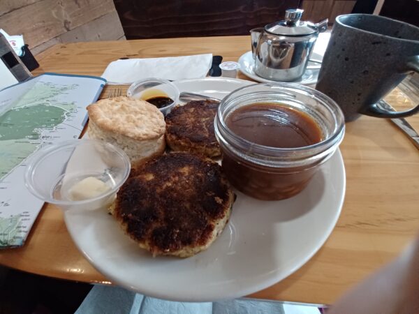 Ach thug mi ùine gu leòr cuideachd gus dràibheadh mun cuairt, àitichean inntinneach fhaicinn agus gus coinneachadh ri daoine – tha caraidean is luchd-eòlais agam an sin tro iomairtean Gàidhlig. Tha seallaidhean brèagha ann, ge be càite an coimhead thu – coilltean dealrach, cladach is beanntan, le eaglaisean is taighean geala fiodha sgapte air feadh na dùthcha, sabhalan àrda, agus tòrr uisge – lochan, aibhneachan agus linneachan-mara, gu tric le taigh-solais beag orra – a’ mhòr-chuid geal, is gu tric fiodha cuideachd. Bha mi toilichte leis cho furasda, taitneach a bha an dràibheadh, gun cus traffaig, agus gun chafag. Is coltach gu bheil e fada nas trainge as t-samhradh. Bha mi fortanach leis an t-sìde cuideachd – grìanach gu leòr, gu ìre mhòr tioram, agus gu math tlàth.